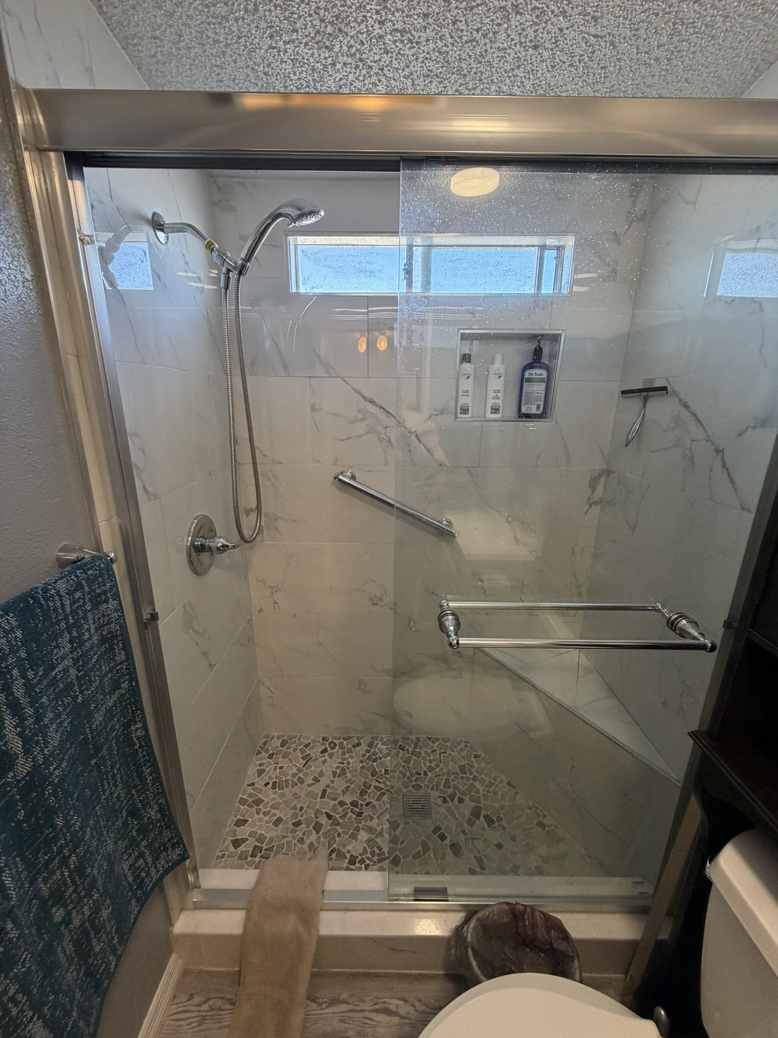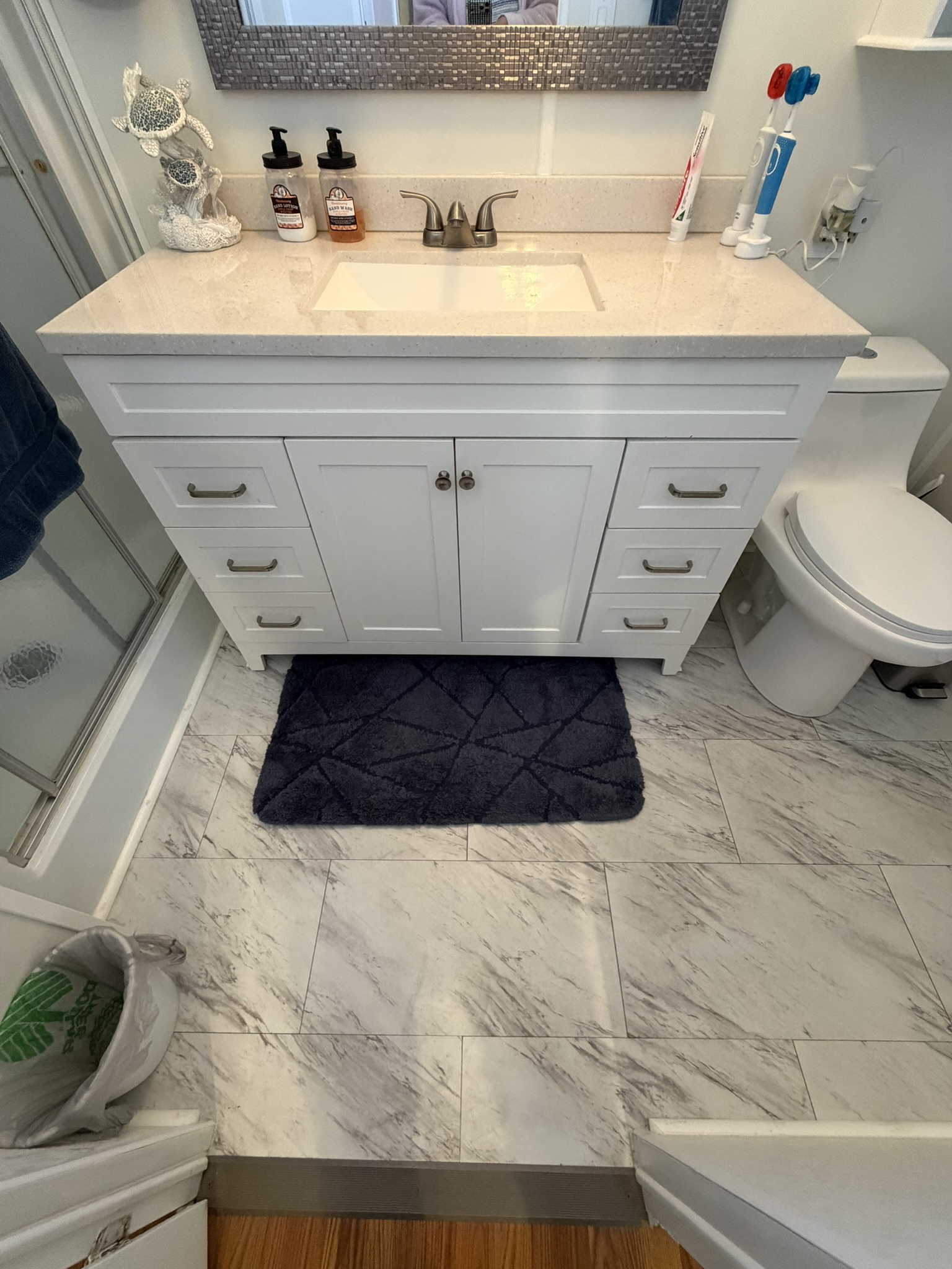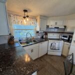 -renovated kitchen with updated cabinets and countertops with tile backsplash