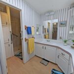 Just walking up to the house, it already feels unique and inviting. As you enter the home, on your left, you will find the guest bedroom, accessible through elegant double French doors, featuring its own attached bath, offering privacy and convenience for visiting family or friends.