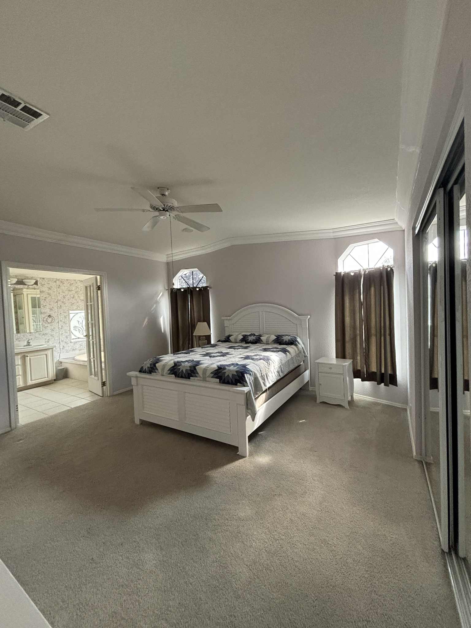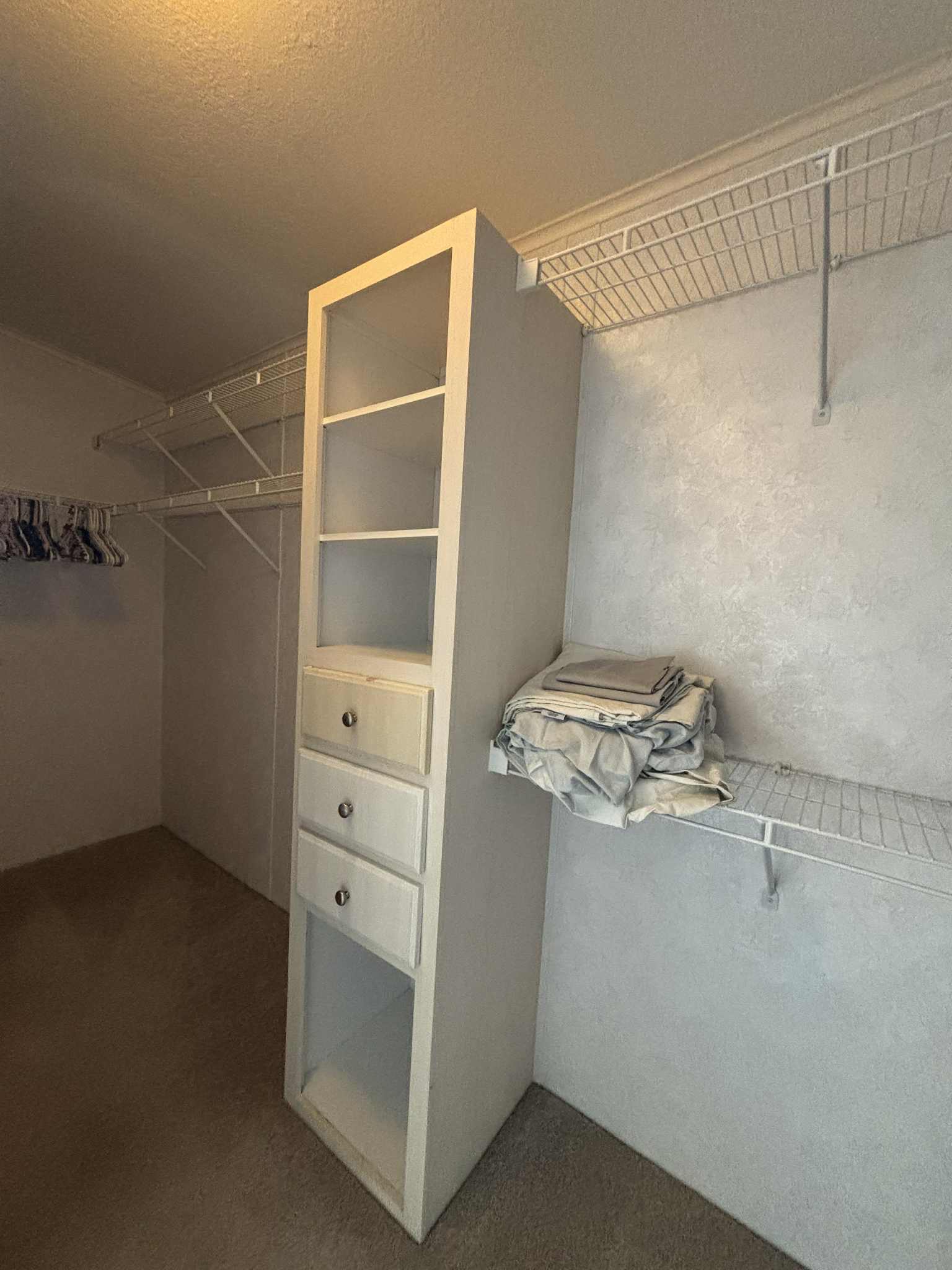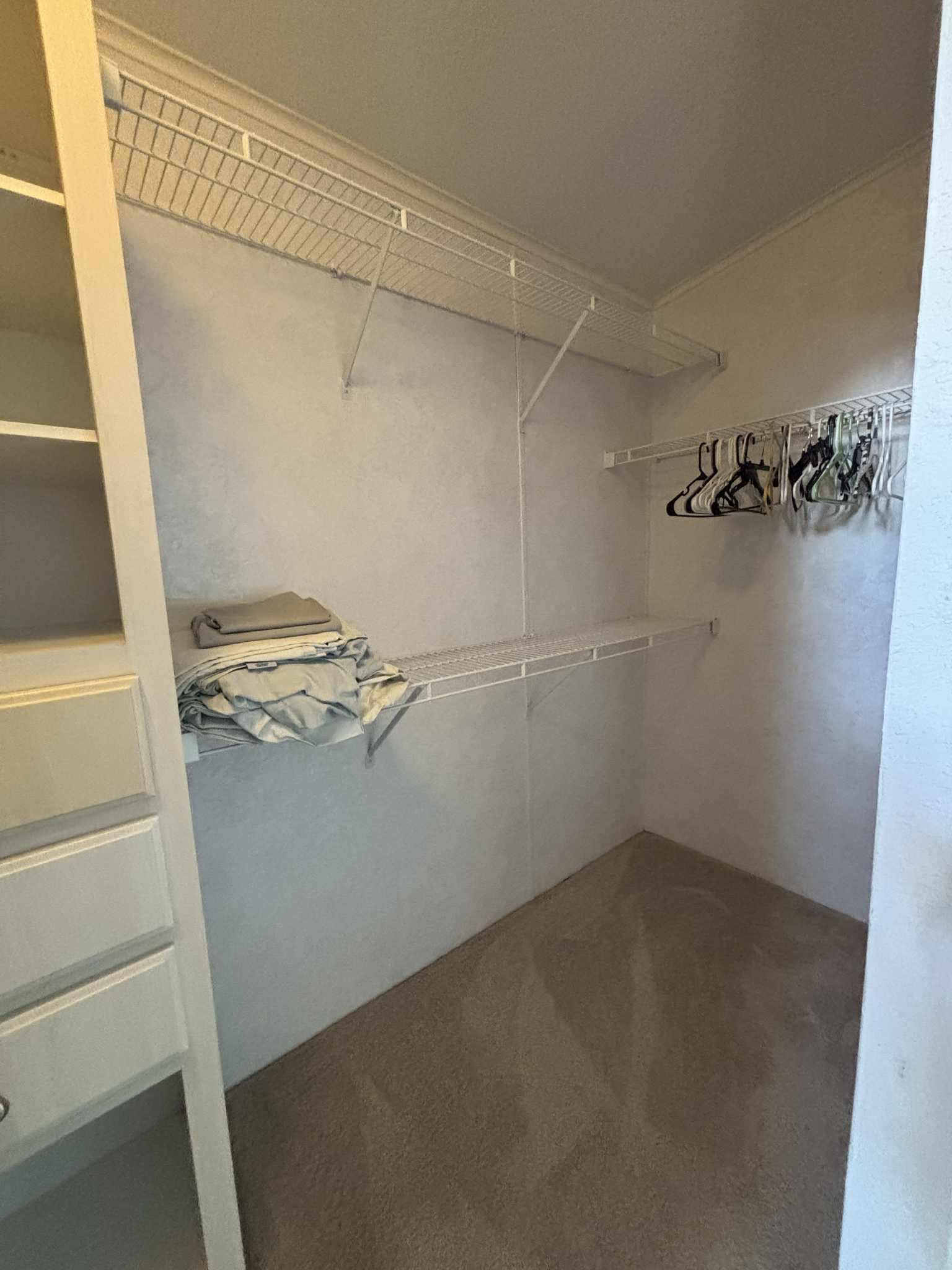 Large master suite walk-in closet with shelving