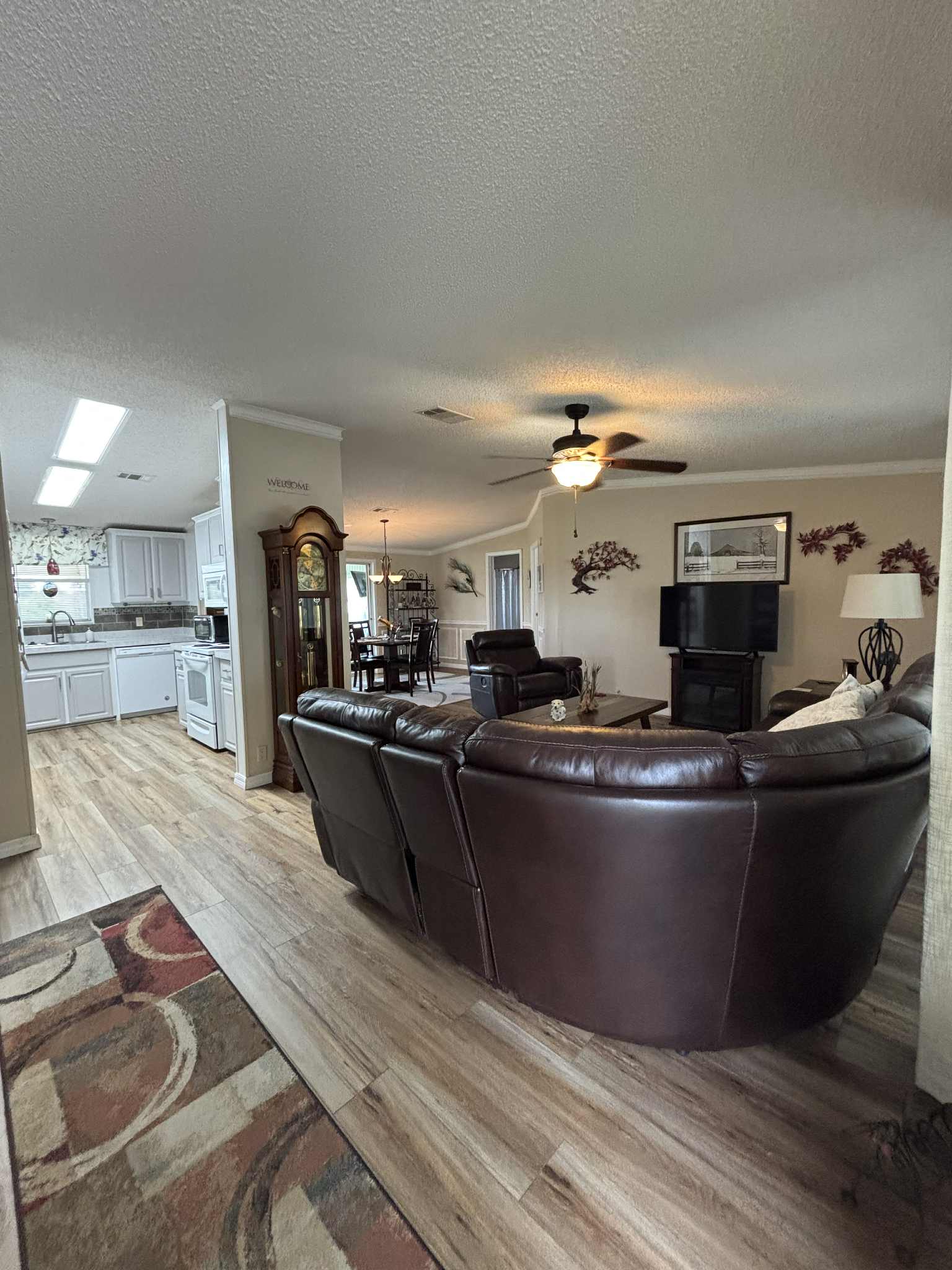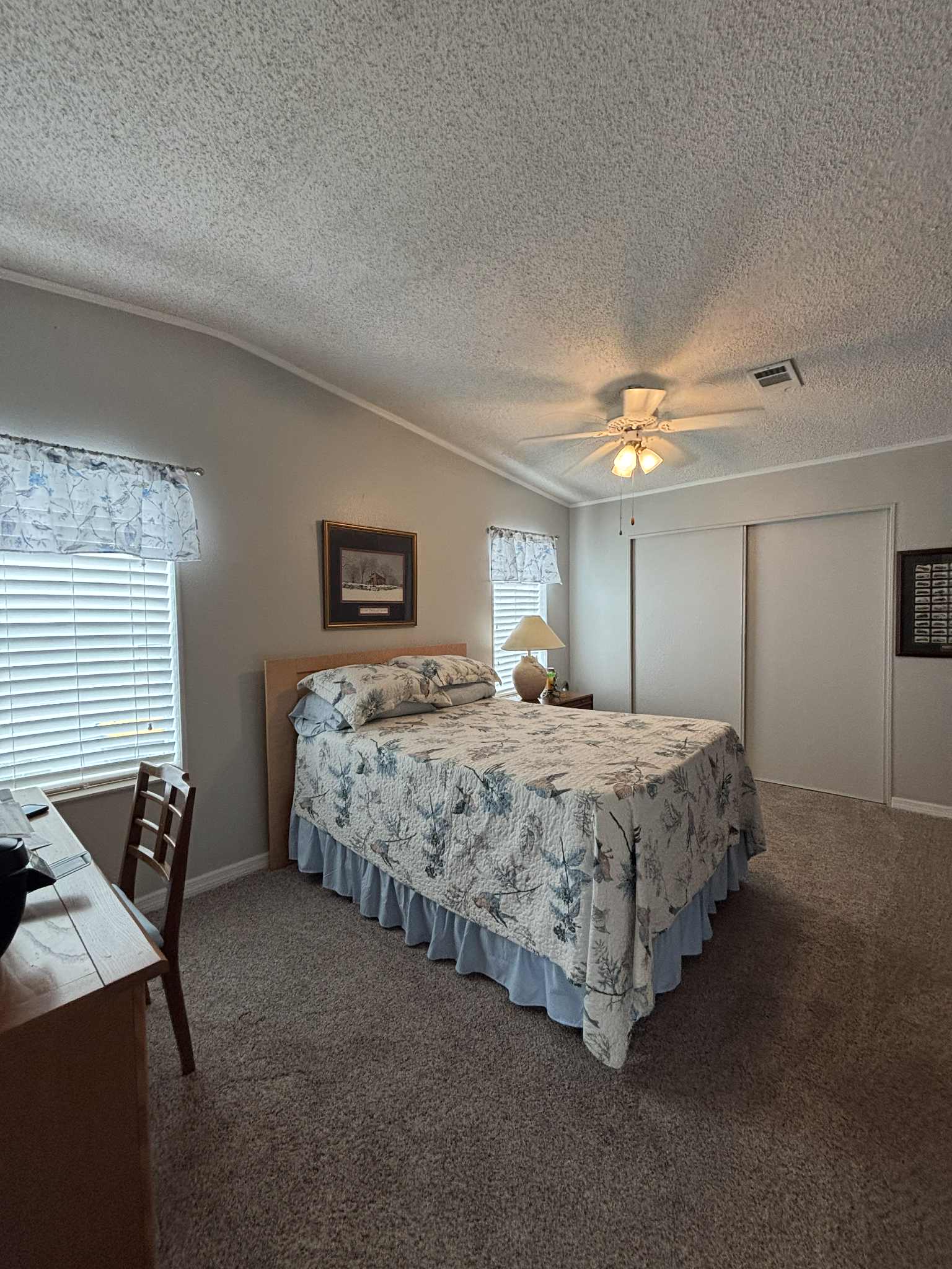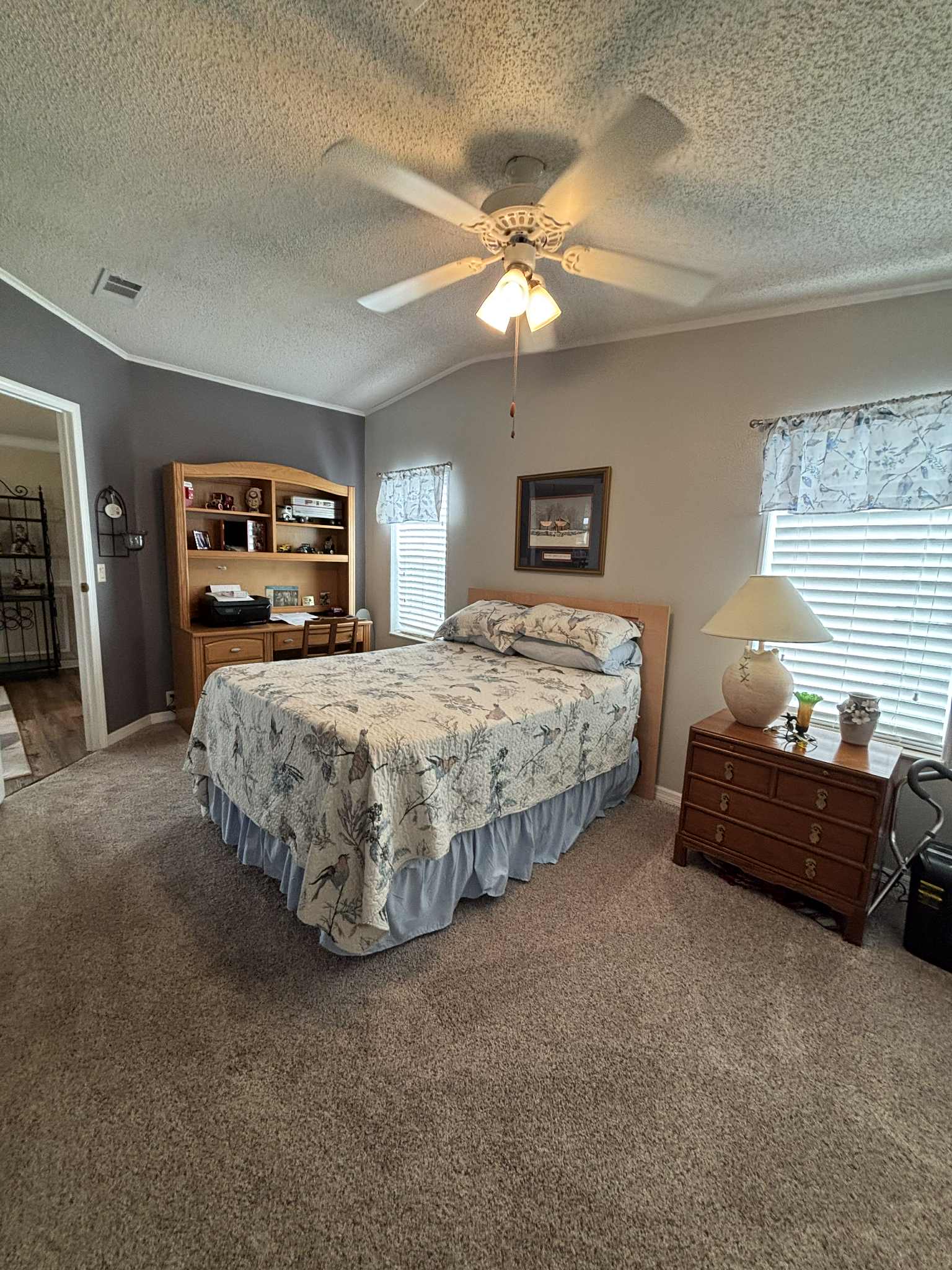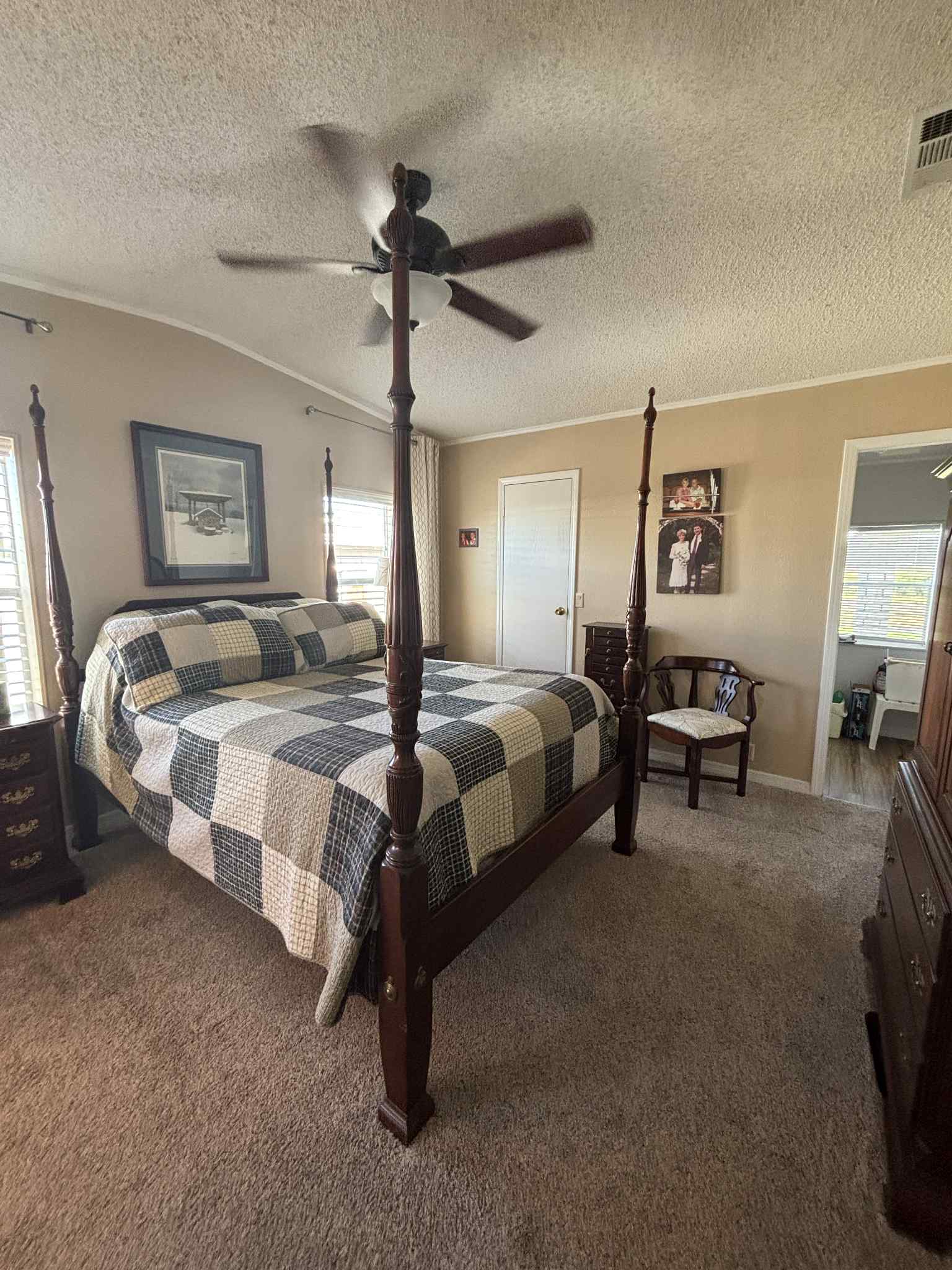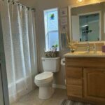 The furnished kitchen is paired with a convenient laundry room complete with overhead cabinets for extra storage. Both bedrooms are generously sized, and the home’s thoughtful design makes everyday living comfortable and enjoyable.