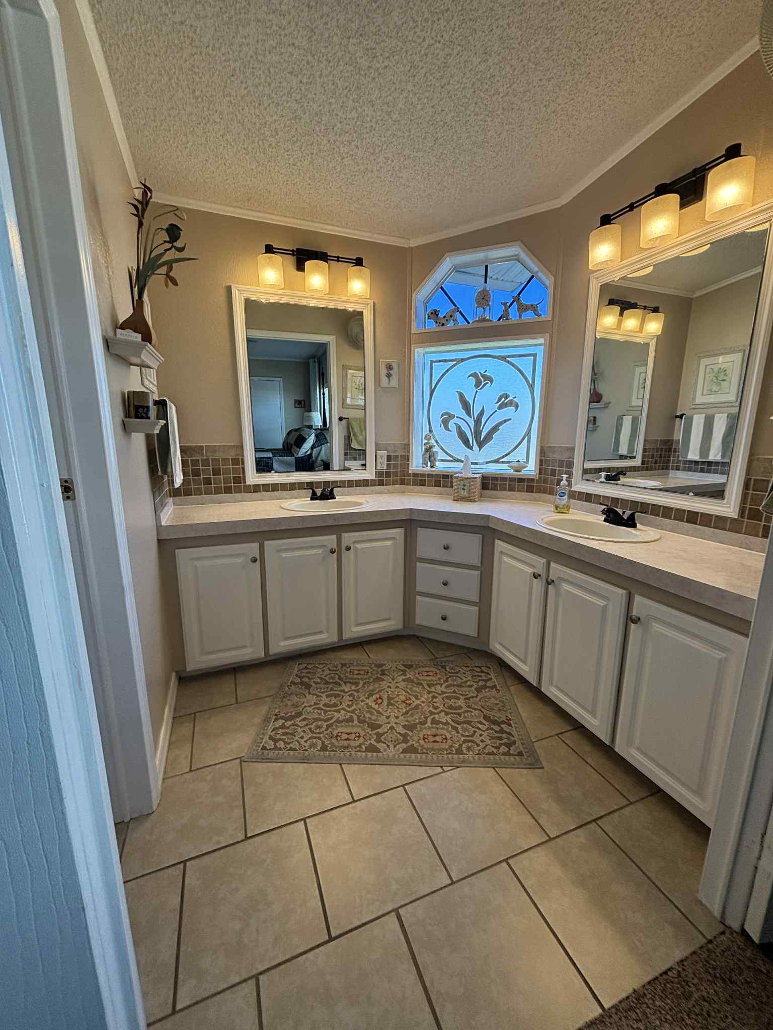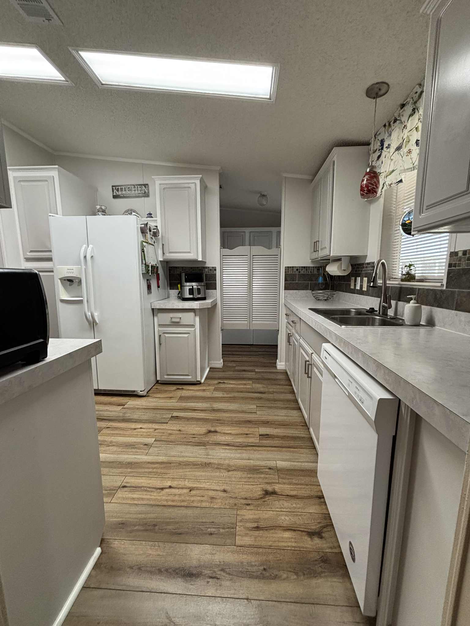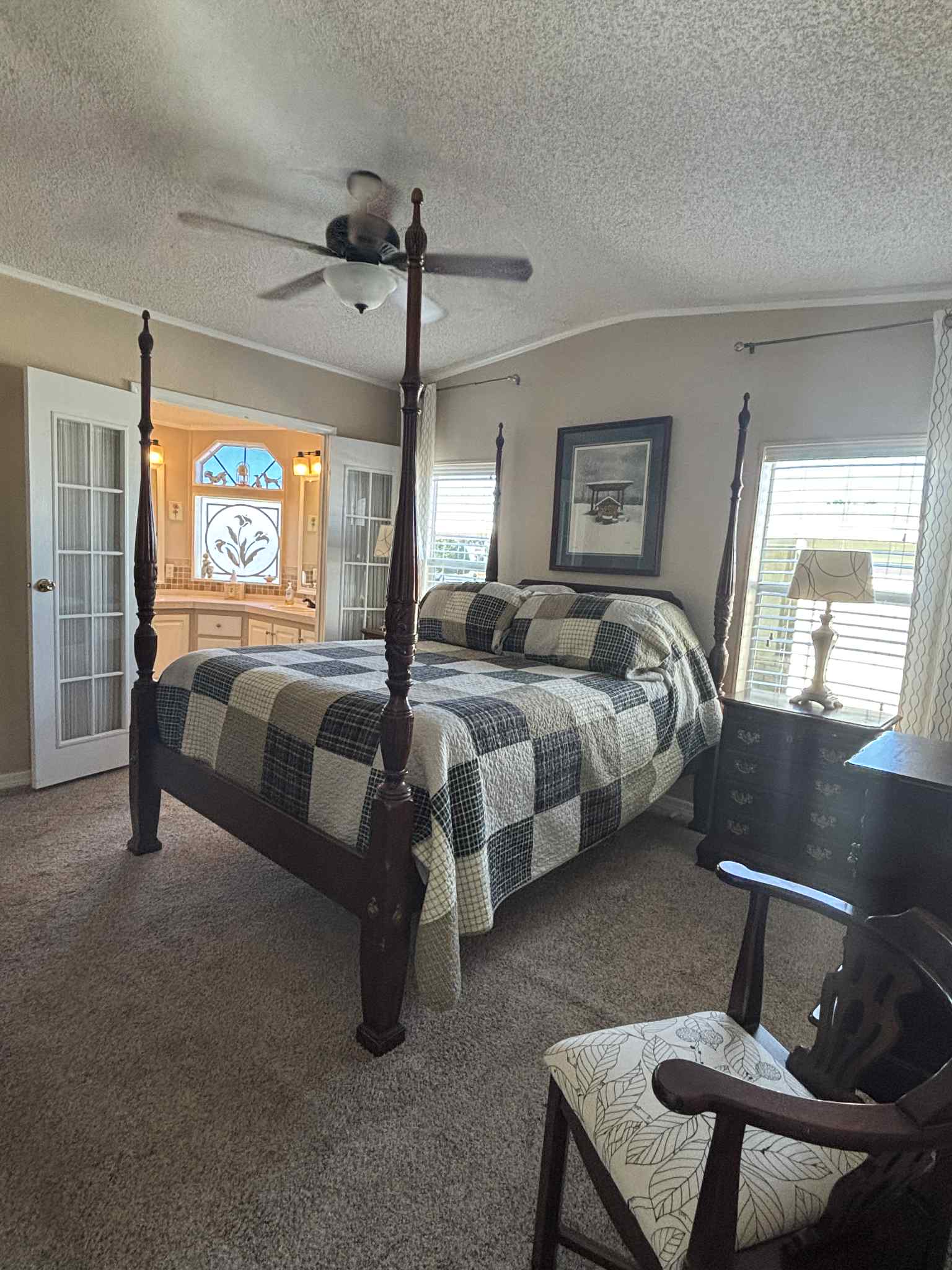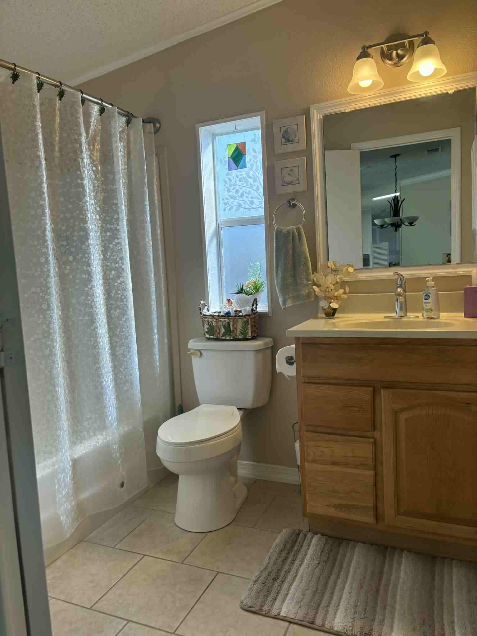 The furnished kitchen is paired with a convenient laundry room complete with overhead cabinets for extra storage. Both bedrooms are generously sized, and the home’s thoughtful design makes everyday living comfortable and enjoyable.