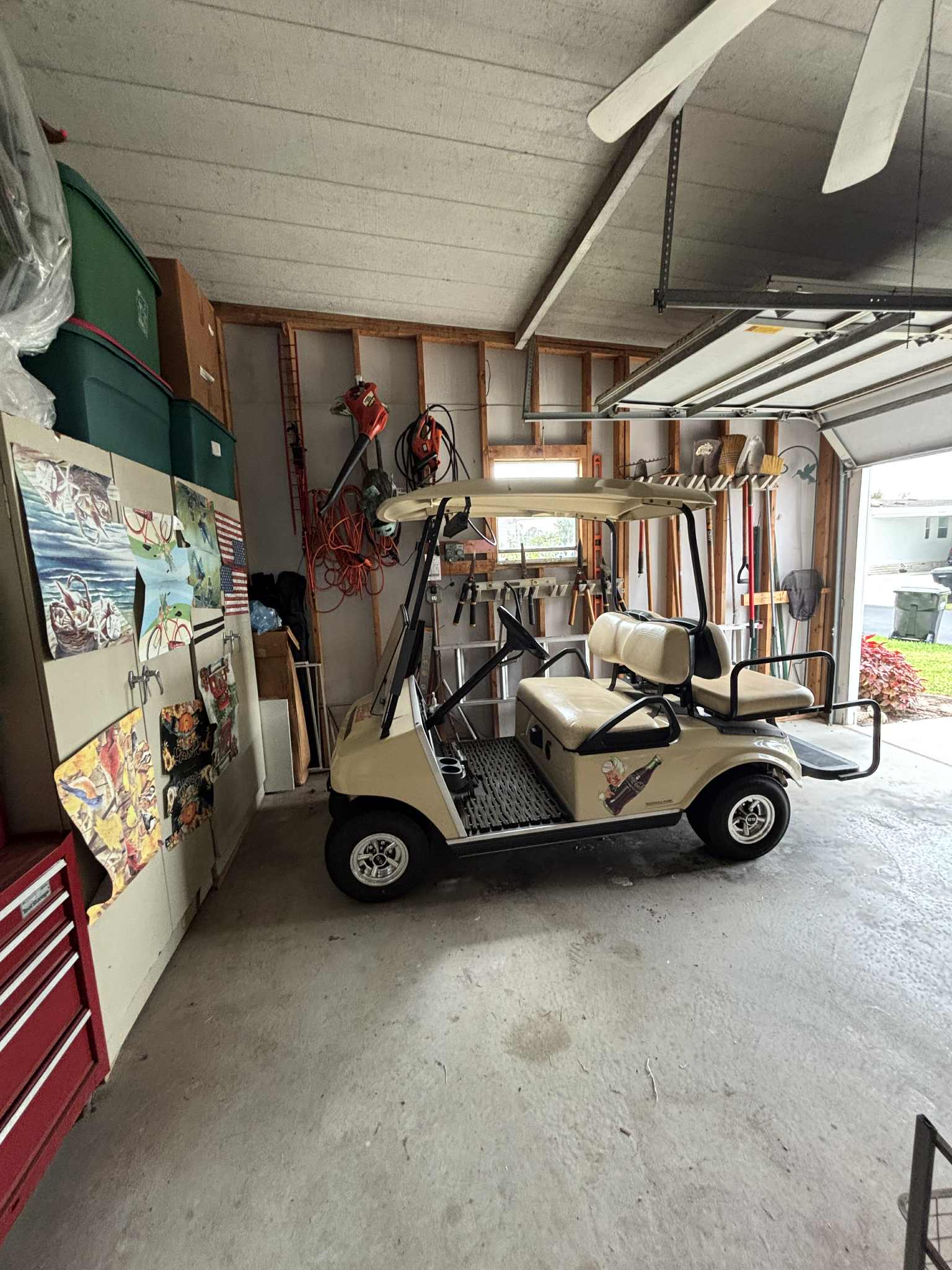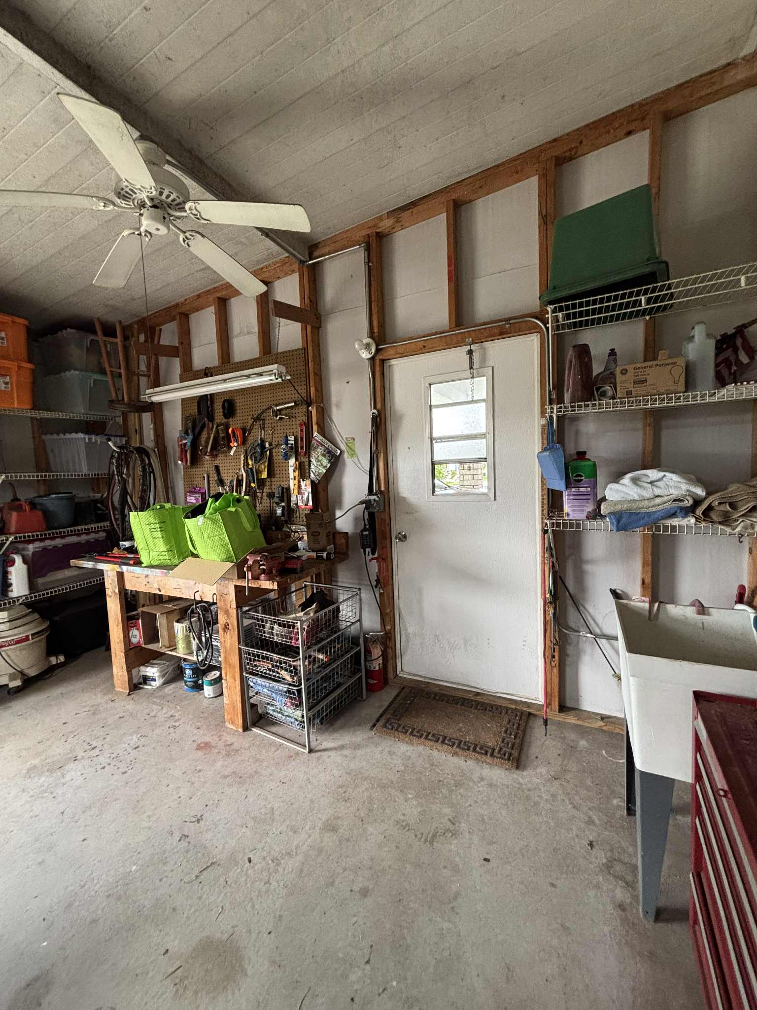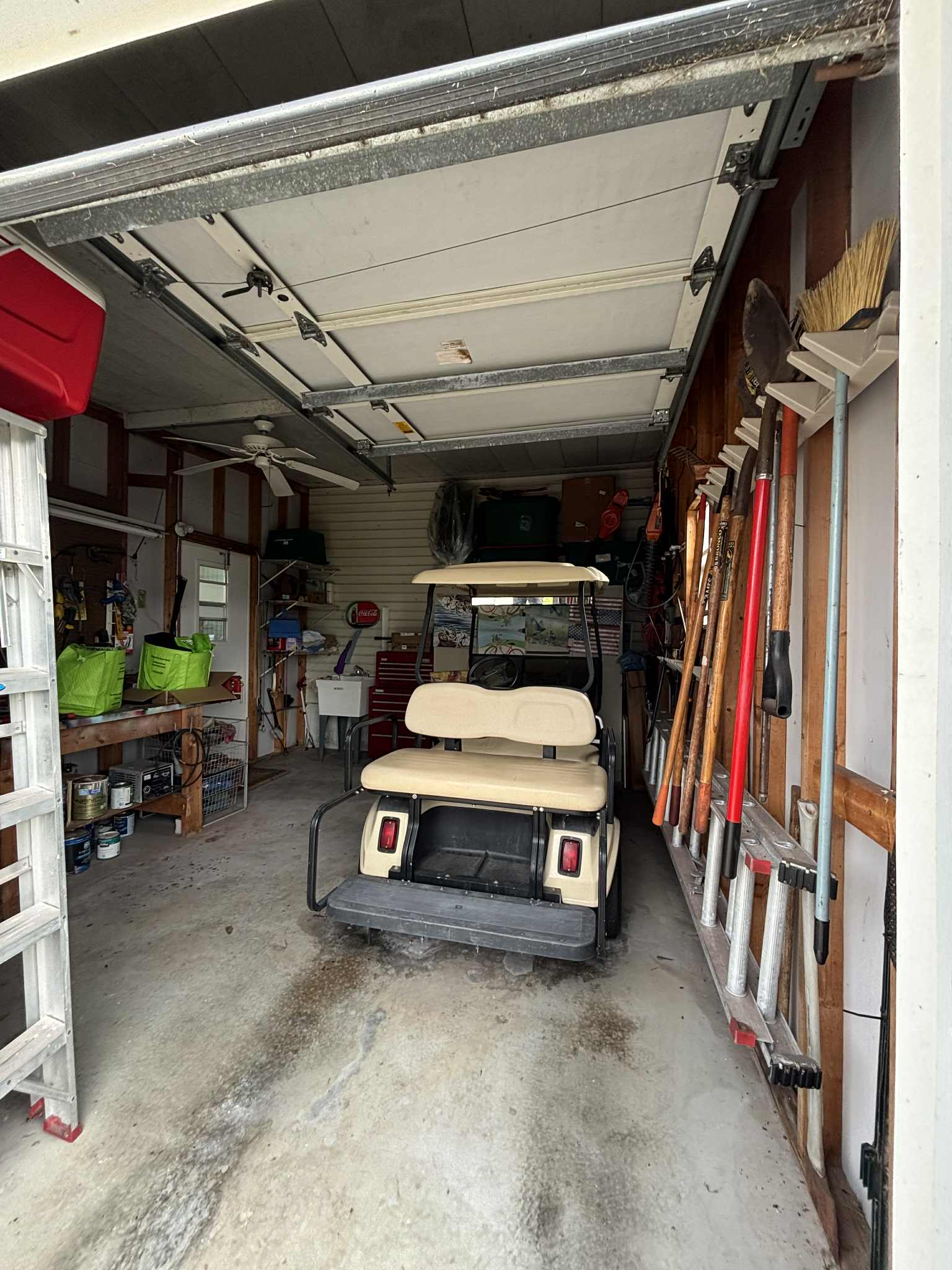 • Golf cart garage with sink, workbench & shelving