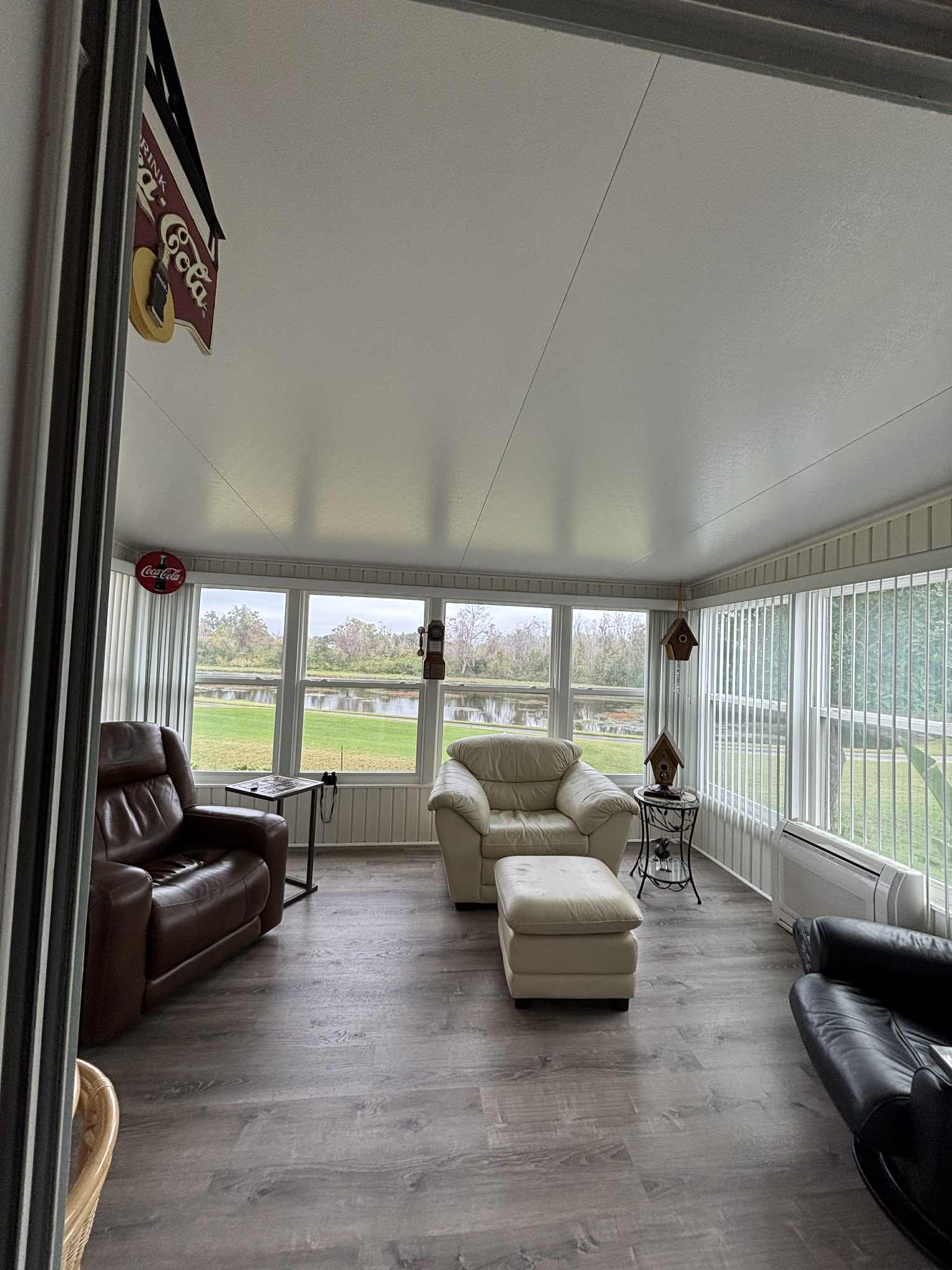 Step inside to an open, airy layout that flows effortlessly from room to room. The windowed lanai is a standout feature, offering panoramic views of the golf course, sparkling pond, and swaying palm trees—your daily dose of “Florida paradise.”