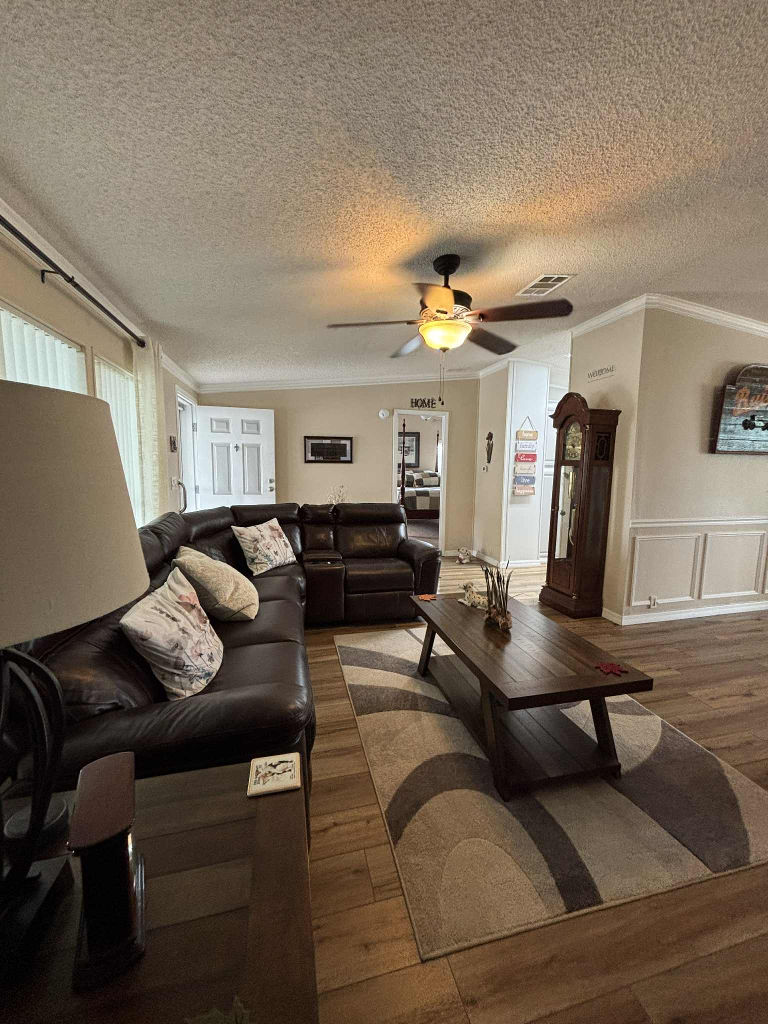 Welcome to this beautifully maintained, fully furnished Florida retreat located in the desirable Four Lakes community. Immaculate inside and out, this move-in-ready home offers drywall throughout, elegant crown molding, charming wainscoting, and easy-care laminate flooring—all creating a bright, polished, and inviting atmosphere.