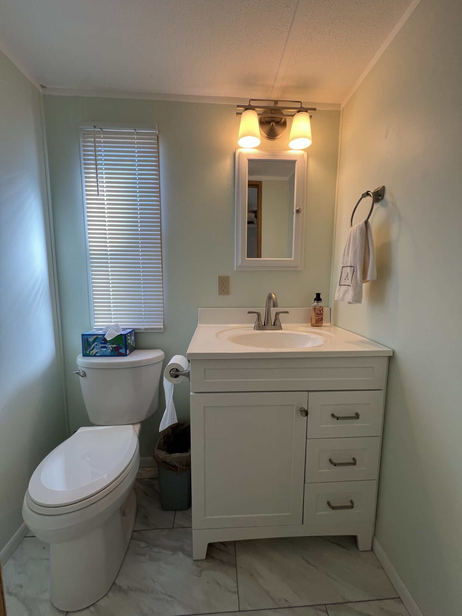 -Modern bathroom vanities and upgraded toilets.